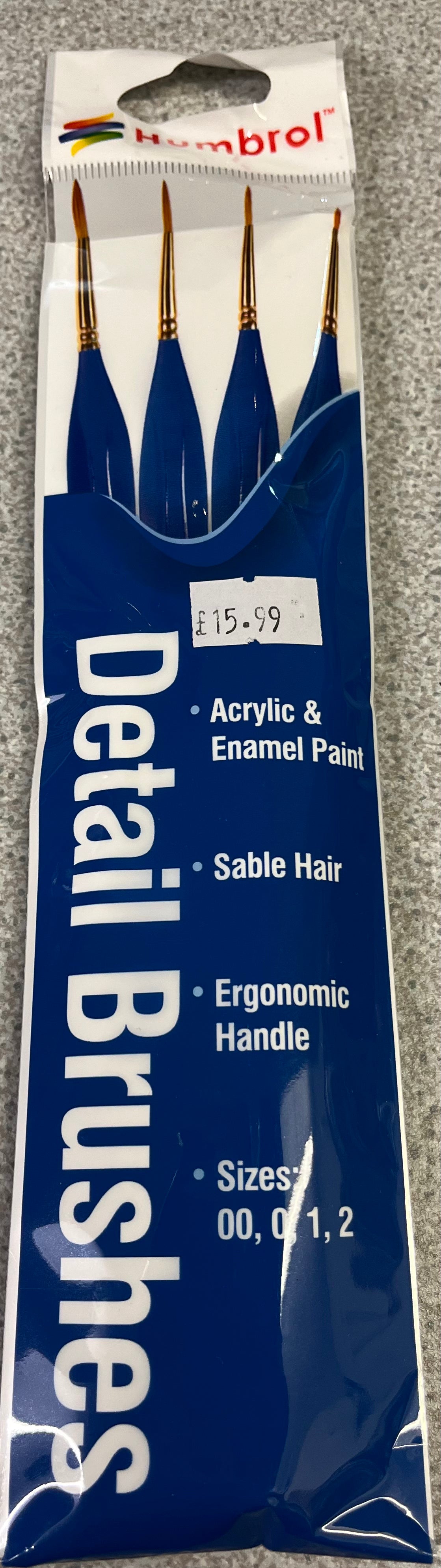 Humbrol Detail Brush pack; Sable hair for acrylic and enamel paint; Sizes 00, 0, 1, 2.