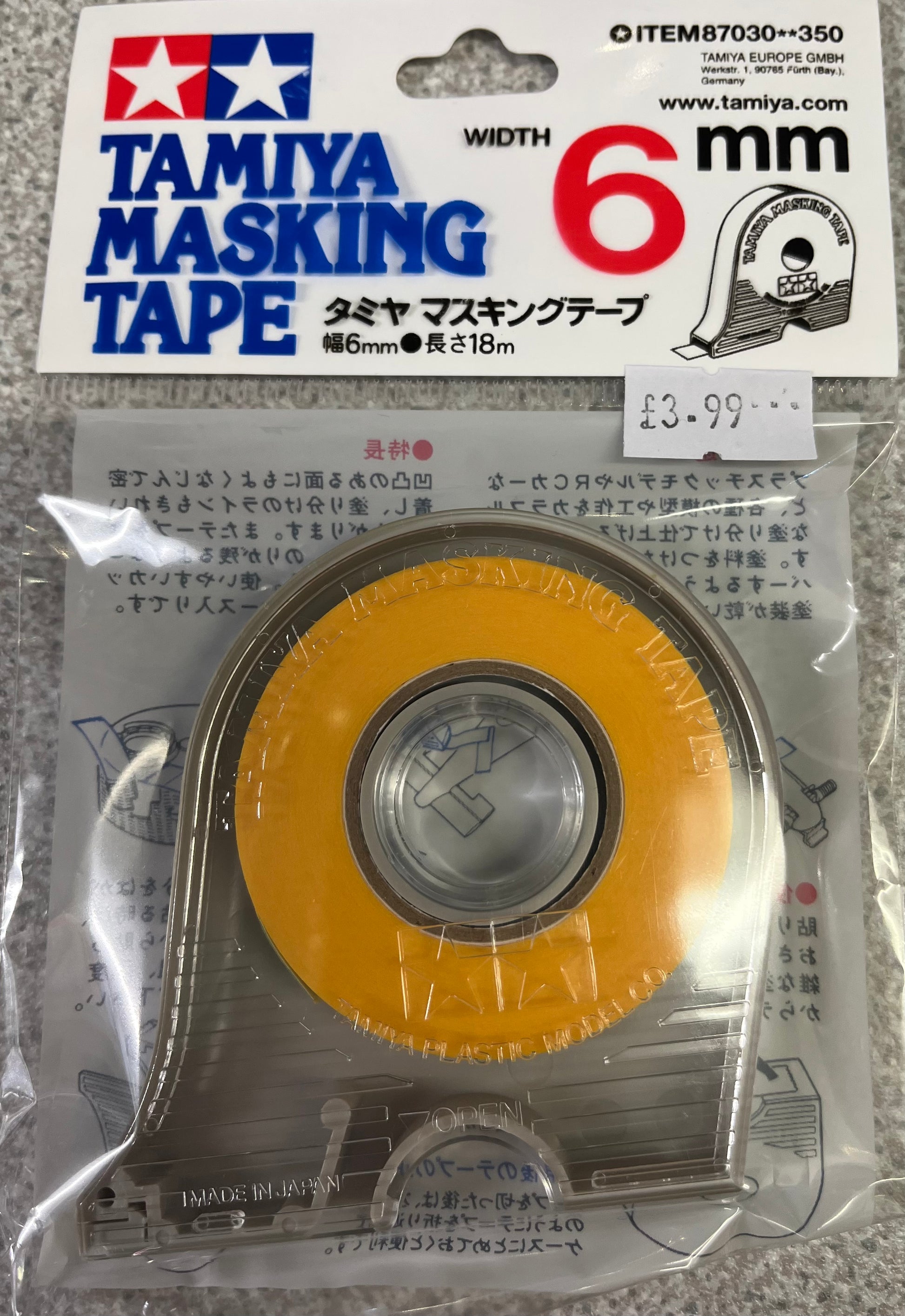 Tamiya 6mm wide masking tape with dispenser. 18m long. Item number 87030