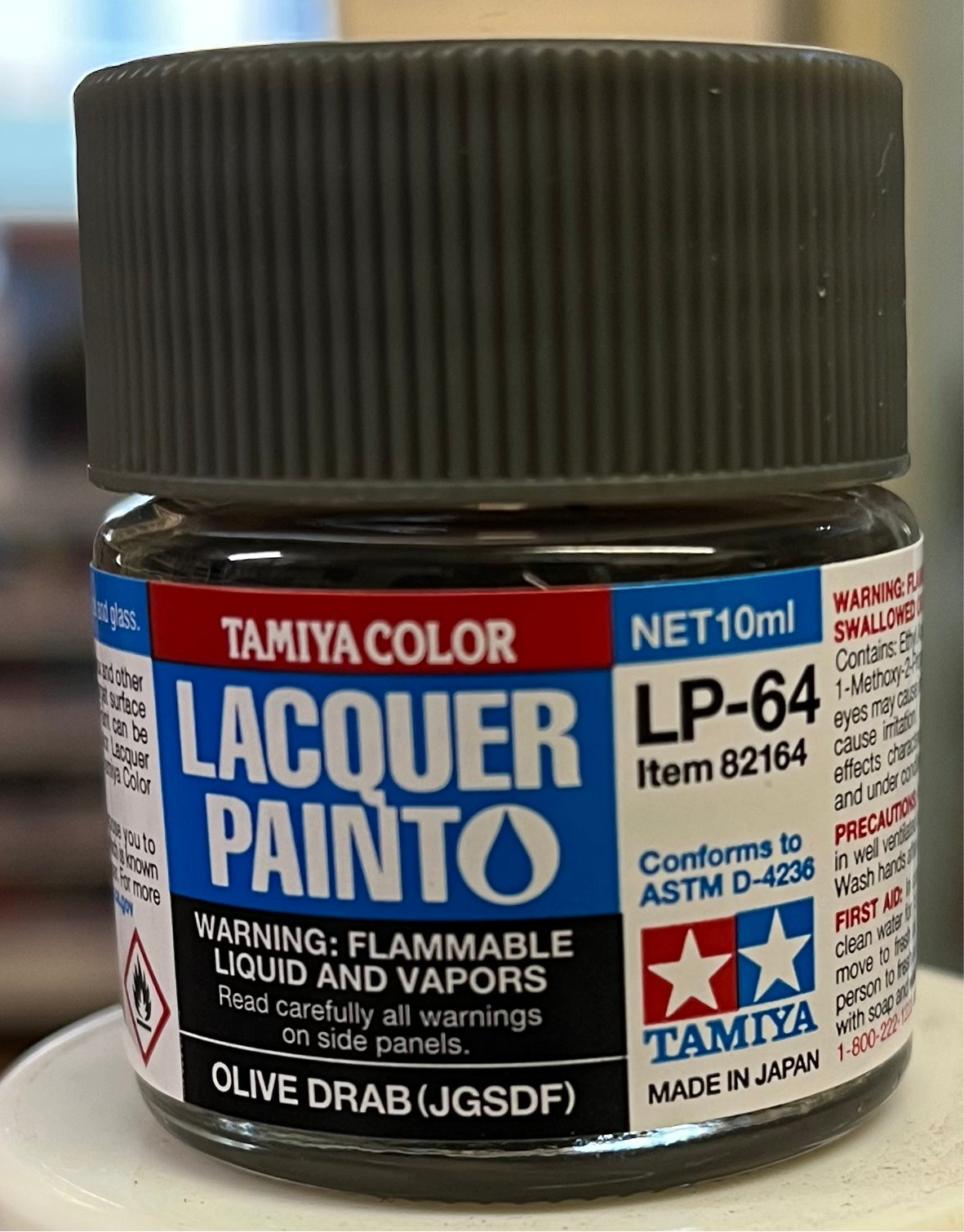 Tamiya LP64 Olive Drab (JGSDF) 10ml lacquer paint.