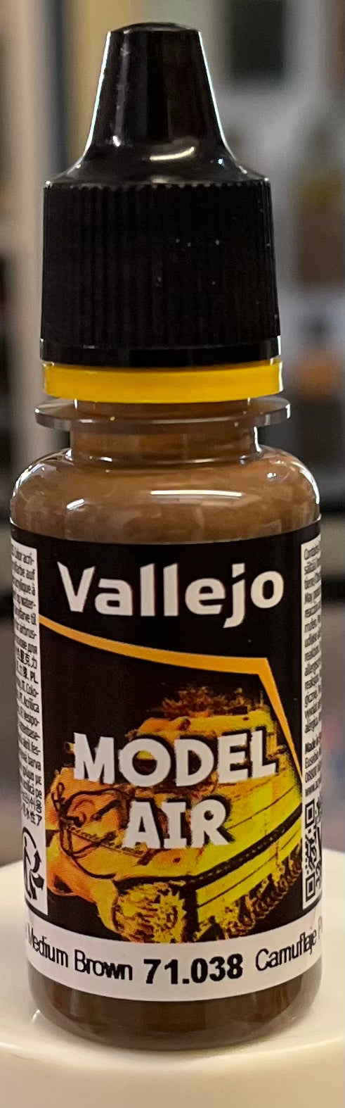 Vallejo Model Air 71.038 Camouflage Medium Brown 18ml acrylic paint.