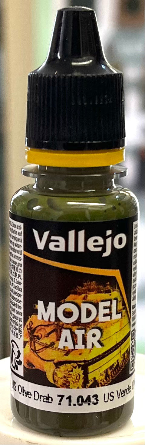 Vallejo Model Air 71.043 US Olive Drab 18ml acrylic paint.