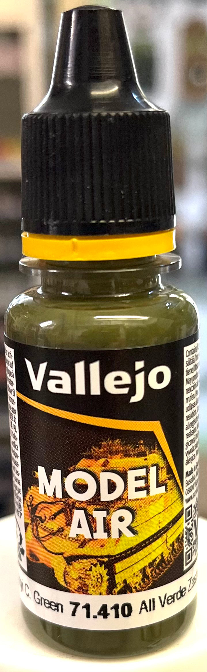 Vallejo Model Air 71.410 All Zashchitnyl Camouflage Green 18 ml acrylic paint.