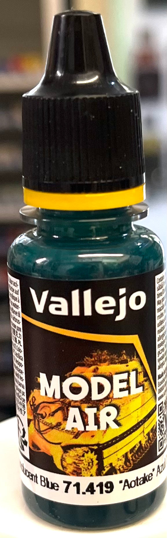 Vallejo Model Air 71.419 “Aotake” Translucent Blue 18ml acrylic paint.